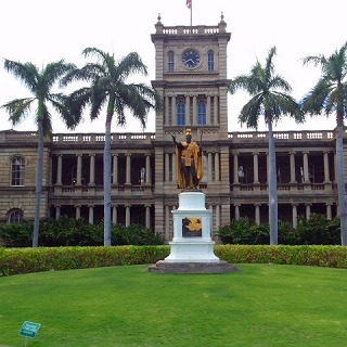イオラニ宮殿です。日系移民の父と呼ばれたカラカウア王が建てた立派な宮殿です。