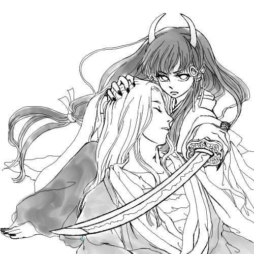 鬼女に拾われた男子という構図で。