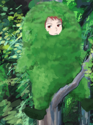 もっさりした緑色の塊にちょこんと出てる顔と目があって一瞬呆ける進くんであった。