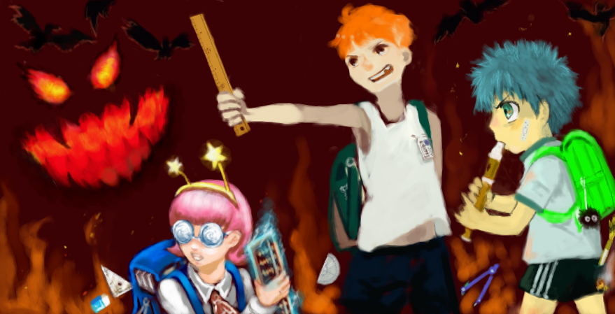 小学生らしいアイテムで、闘うというシチュにたどり着いたのでした。