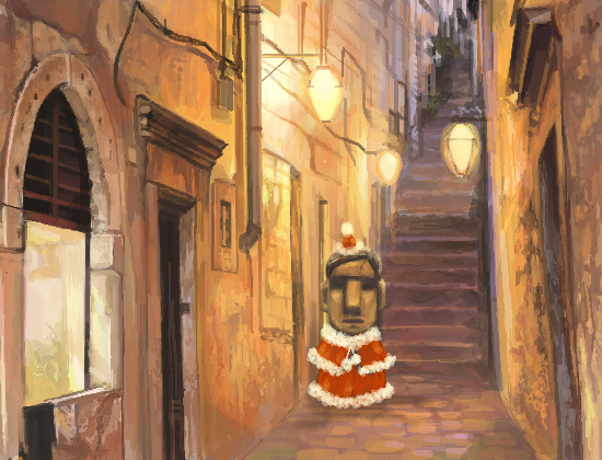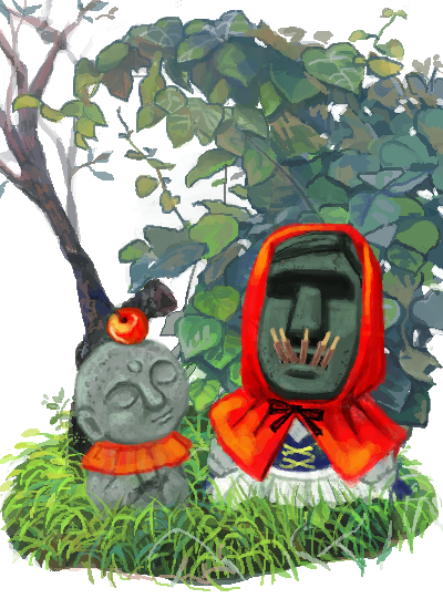三枚目は、これも須藤さんの素敵背景絵に、またしてもモアイ子を練りこんでしまいましたv