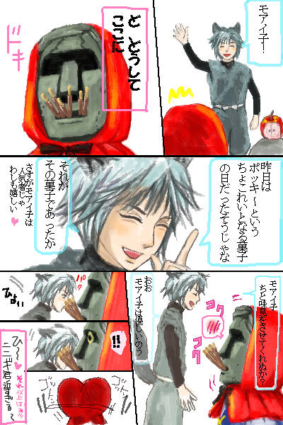 森に迷い込んでしまった赤ずきんモアイ子ですが、ポッキーの日ということで…