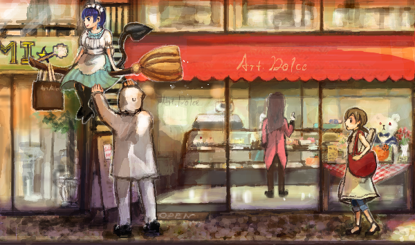 ねふぁさんも、そのお店のスタッフに便乗して、パティシェ見習い志望の魔女子さんを描いたのですが、それぞれお店に組み込んでくださいました。