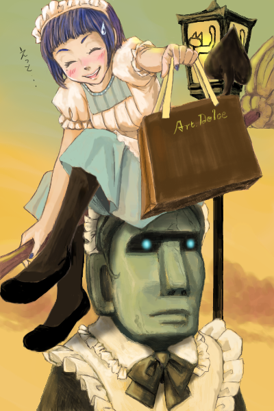 にゅとさんに描いてもらった妄想学園三人組の絵を、「おばあちゃんの店にて」の小話のおまけとしてUPさせてもらいました^^