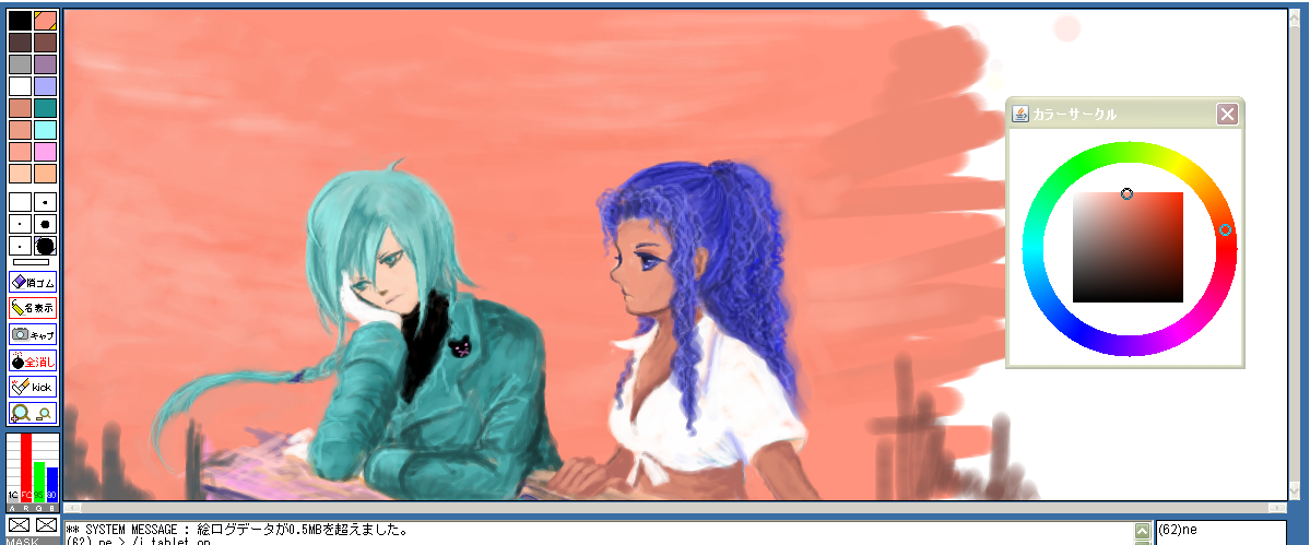 色んな人がお絵かきサクサクされてるから、ここ描いてるのは…と戦隊絵チャに入るのとは勝手が違ってて@@