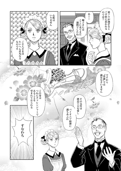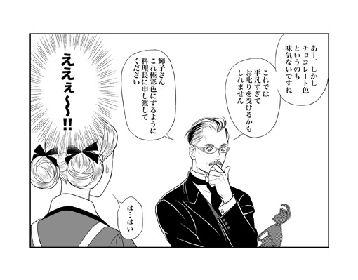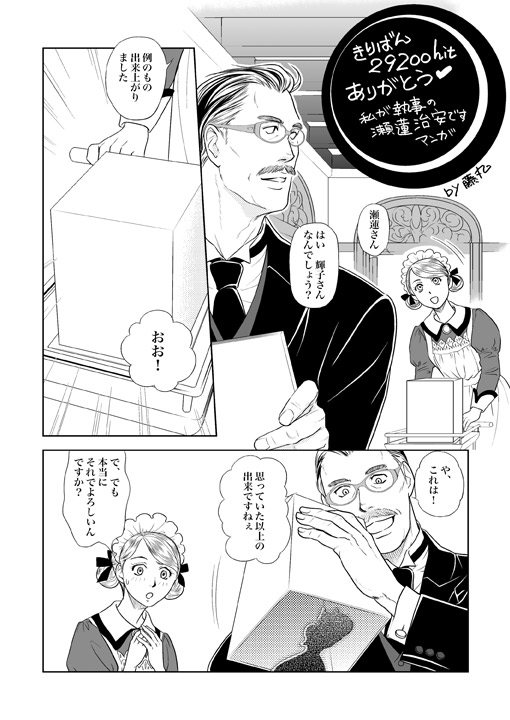 もう練習板で見かけた絵は流れてしまって、記憶の中だけの存在だったんですが(スーツ萌え///)、新たに執事『瀬蓮治安(せばすはるやす)』を誕生させてくださり、メイドさん『輝子(てるこ)』を加えた漫画を描いて下さいましたv