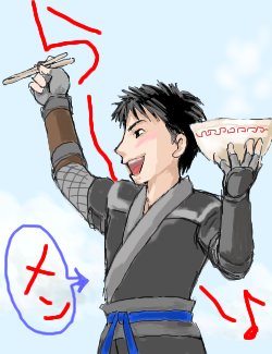 ラーメンGETの喜びを歌う男、というどの辺がダジャレだったのか段々不明となった絵です@@;
