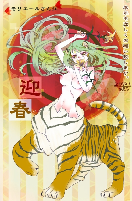 今にも唸りそうな雄々しいトラさんと、美少年の組み合わせ。