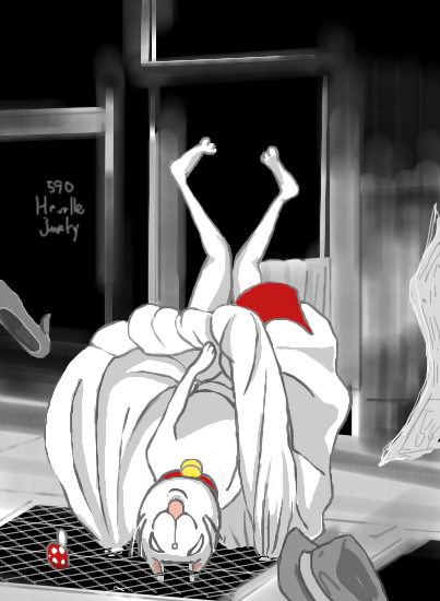 ちょっと暗すぎるかなと思いながら、突然降って沸いたシチュを急いで描きとめて、そこまでは速かったのですが、それぞれの仕草とか、自分にはいつも難しい服に手間取り、あと髪の毛が地獄タイムでした。