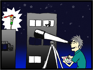 ↓『天体観測』ならぬ『変態観測』中の六郎。大五郎さん作