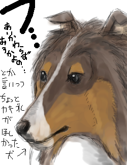 ↓この顛末を途中から見ていたチャーリーくん。ふしょーさん作。