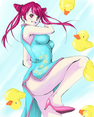 おねいさんの足の上げ具合から、どうしても何かを蹴散らしたくなり、お得意のあひるをババ~ンとストライクさせてみましたv