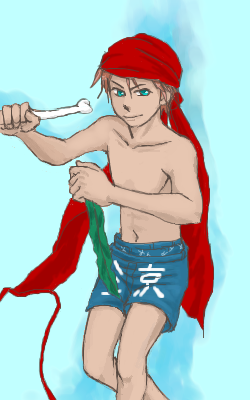 一見かっこいく見えますが、持ってるものはアレなため、まぬけな六郎。
