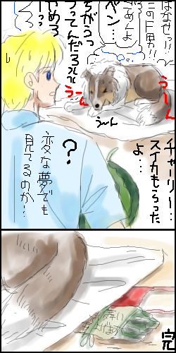 宿命の敵にされた抱擁が、激しくやだったみたいで、チャーリーくんうなされます(笑)