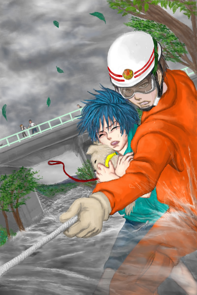消火活動しているシチュもいいなぁ//と色々考えていたんですけど、ただ放水してるだけじゃつまらないし、火の中ならマスク装着で何だかわかんなくなっちゃいそうで、結果レスキューにしました。