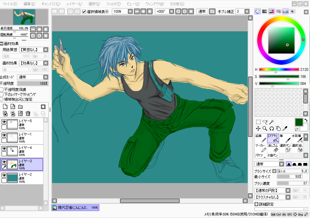 今回、いつもの線画で完成させないで、いきおいで浮かんだイメージを追っていったので、ポーズとかちょっと無理っぽい姿勢です。