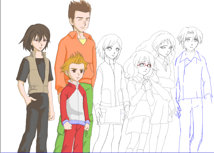 それで画像から残りのカオル、ベル、シンゴと描いて行ったんですけど、画像で絵を描き始めて、ルナたちの絵の劣化具合がすごかったので、なるべく進めようと粘っていたら、またしてもレイヤーがおかしくなって、投稿できない事態に^^;