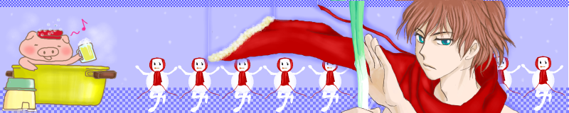 あまりに決まらないので、VSのブタ君で、タオルでオケツぱし~ん☆なんていう絵を落書きしたところ、それが好評ぽいレスをいただき、でもさすがに名簿用なんで、特大ナベに入れてみましたv