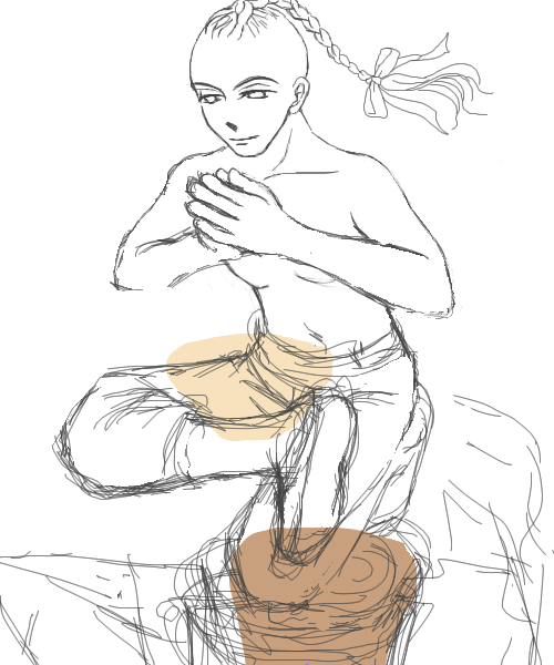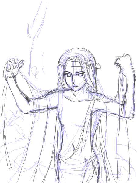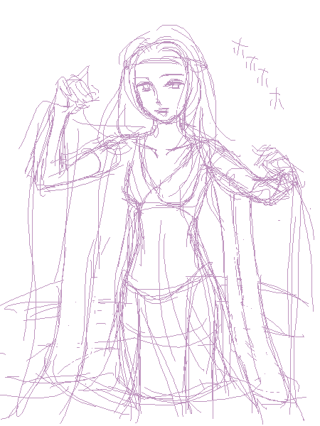 でも、はかどらなかった絵が今後もお目見えできるかもわからないので、べらぼうにきちゃないラフ画ですが、恥を偲んで公開とします。