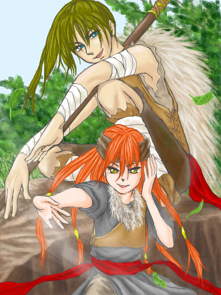 風使いの少女と、槍使いの少年です。