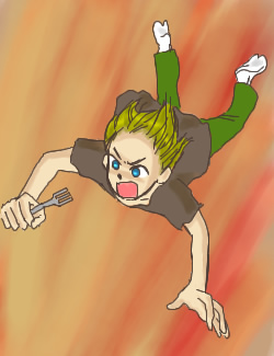 負けじと突っ込む姿勢の少年をかきましたよ(笑) もちろんフォーク持たせてw