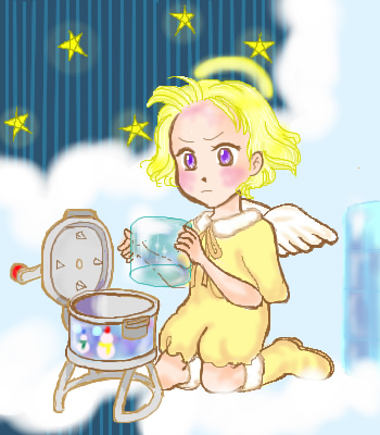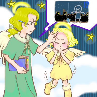 おっちょこちょいな見習い天使が、上官の天使におしかりを受けている図です。