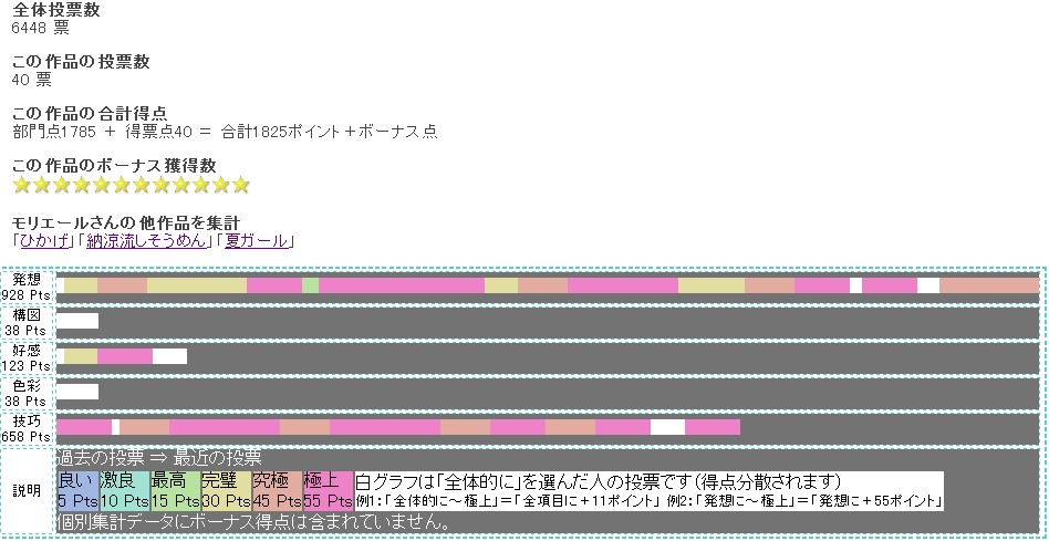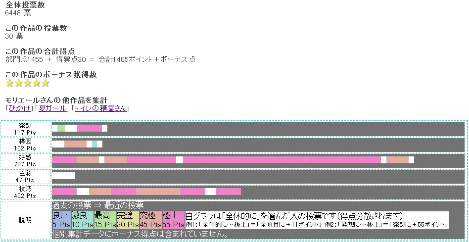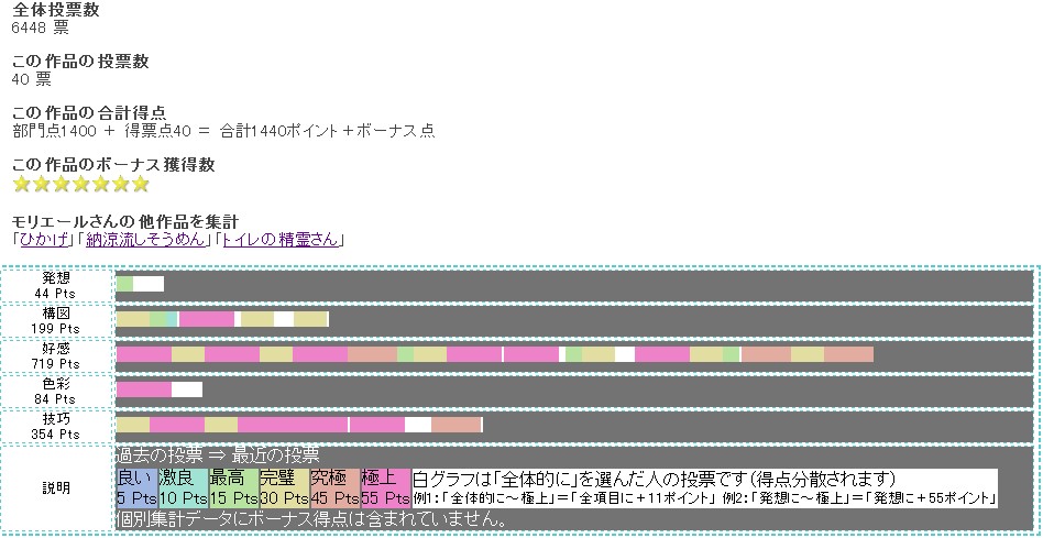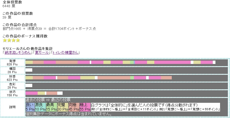 それと、投稿したすべてのポイントと、ボーナスなどすべて合わせた長者番付で第八位 (7739pts) をいただきました。