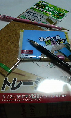 消しゴムはんこを作るために用意したもの。