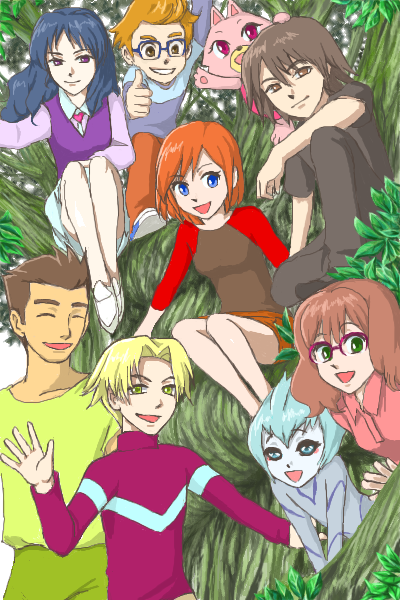 サヴァイヴの二次創作をしている別宅の10万HITのお礼絵として、主要キャストを詰め込みました。