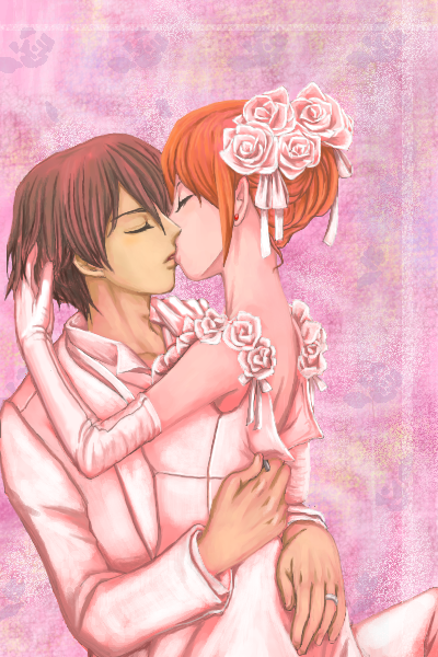 はじめは結婚式のシーンで華やかにキスしてるのを皆が祝ってるというシチュを思い描いてたんです。
