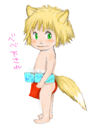 すっかり朝晩涼しくなって、季節の変わり目秋の鼻炎に見舞われているので、以前描いた落書きのふんどしキツネをッファイルに見つけて、何となく描いてたらハナタレ小僧になりました~