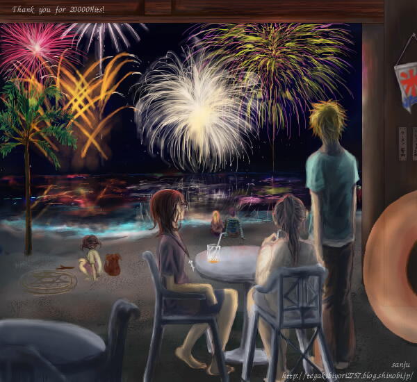 すっかり花火は窓からちっさいのを見るだけと化しましたが、昔間近に見た花火のきれいさとか、この絵を見てて思い出しましたv